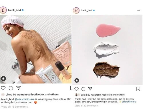 Frank Body is also on target with their people posting. They post a lot of content from the people that actually buy and use their products - their audience!, which means they have used photos or videos that have been uploaded by their buyers.